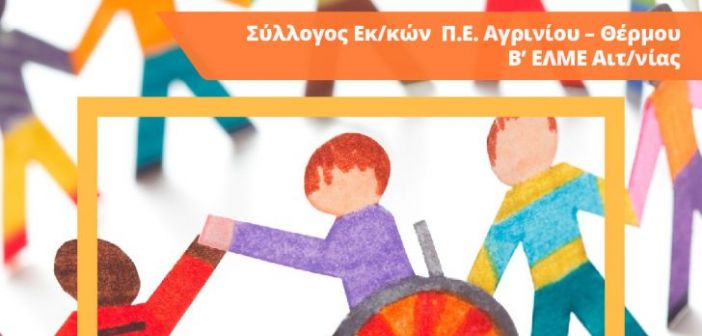 Ο Σύλλογος Εκ/κών Π.Ε. Αγρινίου – Θέρμου και η Β’ ΕΛΜΕ Αιτ/νίας διοργανώνουν Ανοιχτή Εκδήλωση για γονείς και εκπαιδευτικούς με θέμα: Ειδική Αγωγή & Εκπαίδευση. Τι πραγματικά ξέρω; Πώς θα βοηθήσω το παιδί μου; Πού θα απευθυνθώ; Το Δημόσιο Σχολείο μπορεί να με βοηθήσει; Υπάρχει κάποια κατάλληλη δομή στη Δευτεροβάθμια Εκπαίδευση; Λαμβάνοντας υπόψη τις καθημερινές…
