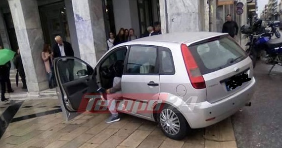 Τρελή τροχιά διέγραψε λόγω ολισθηρότητας ένα Ι.Χ. αυτοκίνητο, το οποίο κατέληξε να «καρφωθεί» σε κολώνα στο πάνω μέρος της πλατείας Γεωργίου, στο ύψος της Κορίνθου, έξω από κατάστημα με γυαλιά οράσεως. Στο σημείο, το κεντρικότερο των Πατρών, βρίσκονταν πολλοί περαστικοί οι οποίοι παρακολούθησαν το αμάξι να «φεύγει» από την πορεία του και να …σταματάει στην…