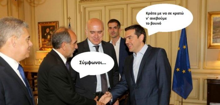 Συνάντηση Περιφερειαρχών με τον Πρωθυπουργό. Σιγή ασυρμάτου με προφανή αιτία το «κράτα με να σε κρατώ ν’ ανεβούμε το βουνό» Χθες πραγματοποιήθηκε συνάντηση του Πρωθυπουργού με τους 13 Περιφερειάρχες της χώρας. Μια συνάντηση που διαφημίστηκε από το Μαξίμου ως σημαντική αφού θέμα θα ήταν ένα εθνικό σχέδιο για την παραγωγική ανασυγκρότηση της πατρίδας μας. Την…