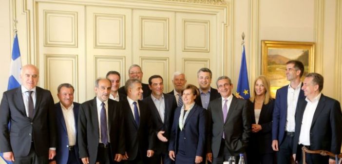 Κ. Αγοραστός: «Παραγωγική Επανάσταση για νέες σταθερές θέσεις εργασίας» Με τον Πρωθυπουργό κ. Α. Τσίπρα συναντήθηκαν σήμερα οι 13 Περιφερειάρχες, παρουσία των Υπουργών Εσωτερικών κ. Π. Σκουρλέτη και Οικονομίας και Ανάπτυξης κ. Δ. Παπαδημητρίου, του Αναπληρωτή Υπουργού Οικονομίας και Ανάπτυξης κ. Α. Χαρίτση και του Υφυπουργού κ. Στ. Πιτσιόρλα. Μετά τη συνάντηση ο Πρόεδρος…