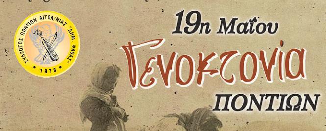 Ο Σύλλογος Ποντίων Αιτωλοακαρνανίας «Δημήτρης Ψαθάς» δημοσίευσε το πρόγραμμα εκδηλώσεων για την ημέρα εθνικής μνήμης, την 19η Μαΐου, η μέρα γενοκτονίας των Ποντίων. Το πρόγραμμα έχει ως εξής: Οι «μνήμες»της Μαρίνας Κουτσοσπύρου στην Παλιά Αγορά Αγρινίου (ΔΕΙΤΕ ΦΩΤΟ)…