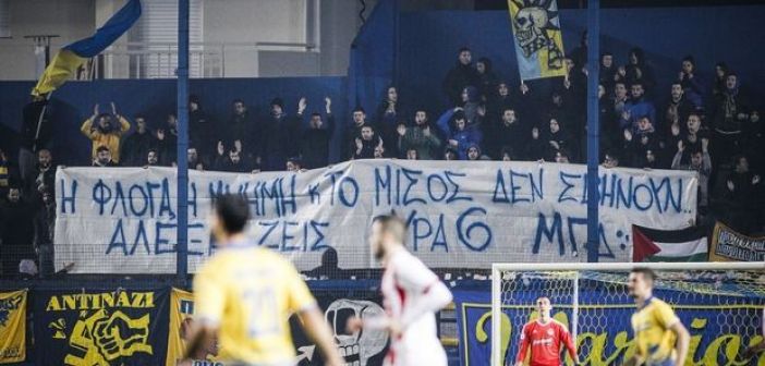 Εννέα χρόνια συμπληρώθηκαν φέτος από τη δολοφονία του Αλέξη Γρηγορόπουλου. Μερικές ημέρες μετά, οι οπαδοί του Παναιτωλικού σήκωσαν πανό στο ματς με τον Ολυμπιακό με τον αδικοχαμένο νέο. Οι φίλαθλοι του Παναιτωλικού τίμησαν τη μνήμη του Αλέξη Γρηγορόπουλου μερικές ημέρες μετά τη συμπλήρωση εννέα χρόνων από τη δολοφονία του. Συγκεκριμένα στην κερκίδα με τους οργανωμένους…