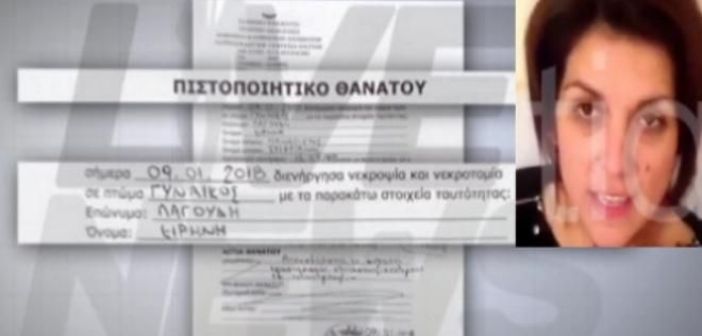 Αυτό είναι το πιστοποιητικό θανάτου της 44χρονης Ειρήνης Λαγούδη. Είναι αυτό που συνέταξε ο ιατροδικαστής της Πάτρας, για να μπορέσει να γίνει η ταφή. Όπως βλέπετε στο έγγραφο, που αποκαλύπτει η εκπομπή LiveNews, ο θάνατος της 44χρονης μητέρας, περιγράφεται ως απροσδιόριστος, εν αναμονή των εργαστηριακών εξετάσεων. Οι πληροφορίες που διέρρευσαν το Σαββατοκύριακο, για την ύπαρξη…