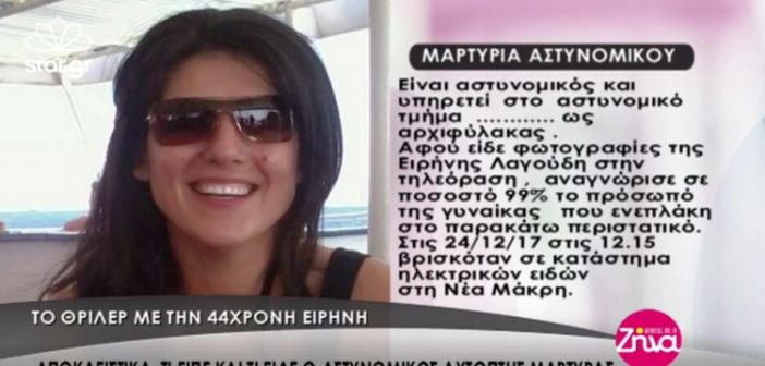 Στο φως έφερε η εκπομπή «Αλήθειες με τη Ζήνα» ολόκληρη την κατάθεση του αστυνομικού, ο οποίος, όπως είπε, είδε την Ειρήνη Λαγούδη στις 24 Δεκεμβρίου στη Νέα Μάκρη να διαπληκτίζεται με δύο άνδρες. Στην κατάθεσή του, ο αστυνομικός υποστηρίζει ότι αναγνώρισε τη 44χρονη από τις φωτογραφίες της που είδε στην τηλεόραση. «Στις 24 Δεκεμβρίου στις…