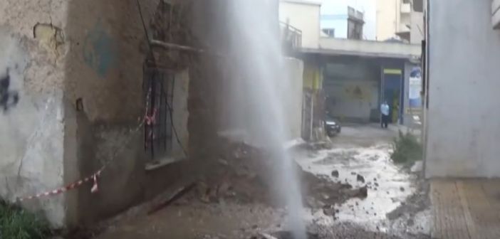 Και ξαφνικά στο τέρμα της οδού Ασημάκη Φωτήλα, σε ένα στενάκι που την συνδέει με την Μπουκαούρη, η γη άνοιξε. Και το νερό άρχισε να πέφτει με πίεση πάνω σε ένα παλιό σπίτι. Το περιστατικο συνέβη στις 5 το απόγευμα και όπως λένε οι περιοικοι μέχρι και τις 7.30 η ΔΕΥΑΠ δεν είχε φθάσει. Αποτέλεσμα;…