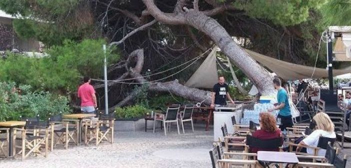 Επεισοδιακή ήταν η νύχτα του Σαββάτου στον Άγιο Βασίλειο Πατρών καθώς οι αέρηδες έριξαν κλαδιά ή και ολοκληρα δέντρα σε δρόμους και σπίτια. Ο δυνατός άνεμος στην παραλία του Αγίου Βασιλείου ξεριζωσε μια λεύκα με αποτέλεσμα να γκρεμιστεί η μάντρα οικήματος που στεγάζεται καφετέρια της περιοχής. Το δέντρο αυτή τη στιγμή έχει στερεωθεί στην οροφή…
