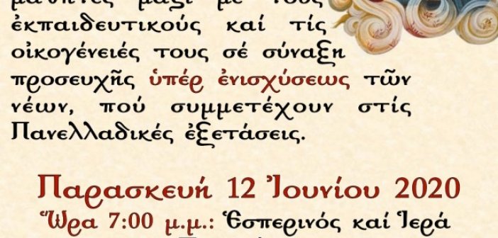 Συνεχίστε την ανάγνωση του άρθρου: Εσπερινός και Ιερά Παράκληση στην Αγία Παρασκευή Αγρινίου