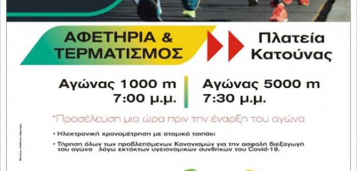 Την Κυριακή 19 Ιουλίου 2020 θα διεξαχθεί ο 3ος ΑΓΩΝΑΣ ΔΡΟΜΟΥ ΚΑΤΟΥΝΑΣ. Αφετηρία και τερματισμός η Πλατεία Κατούνας Έναρξη αγώνα: 1000 μέτρα 7.00 μ.μ. Αγώνας 5000 μέτρων 7.30 μ.μ. Προσέλευση μια ώρα πριν την έναρξη…