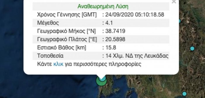 Κοινωνικά 2020-09-24 Σεισμός 4,1 ρίχτερ στην Λευκάδα Δυτικά FM Σεισμός 4,1 ρίχτερ στην Λευκάδα… Συνεχίστε την ανάγνωση του άρθρου: Σεισμός 4,1 ρίχτερ στην Λευκάδα