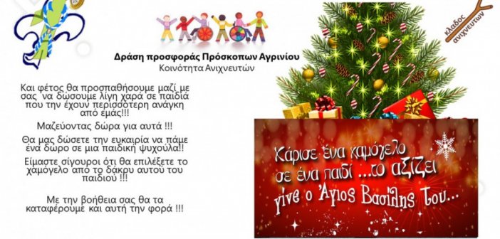 Εμείς οι Πρόσκοποι Αγρινίου για 5η συνεχόμενη χρονιά προσπαθούμε με την βοήθεια των συμπολιτών μας να χαρίσουμε χαμόγελα σε παιδιά που θα ΄΄ ξεχάσει ΄΄ ο Άγιος Βασίλης!!! Κάθε Χριστούγεννα προσπαθούμε να χαρίζουμε χαμόγελα σε…