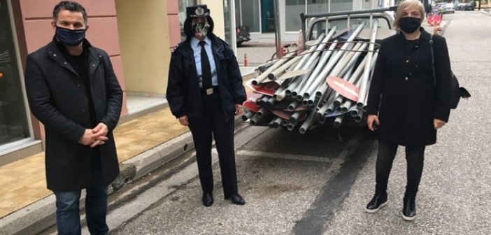80 νέες πινακίδες σήμανσης του Κώδικα Οδικής Κυκλοφορίας παρέλαβε σήμερα ο Δήμος Ι.Π. Μεσολογγίου από την Διεύθυνση Αστυνομίας Αιτωλίας και την Τροχαία. Τις πινακίδες παρέδωσε στους Αντιδημάρχους Νίκο Καραπάνο και ΠερσεφώνηΜελαχρή η Διοικητής της Τροχαίας…