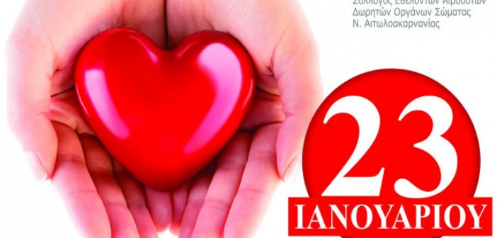 Ο Σύλλογος Εθελοντών Αιμοδοτών & Δωρητών Οργάνων Σώματος Αιτωλοακαρνανίας διοργανώνει εθελοντική αιμοδοσία το Σάββατο 23 Ιανουαρίου στο ΚΑΠΗ Αγίου Κωνσταντίνου από τις 09:30 το πρωί μέχρι τις 13:30 το μεσημέρι. Για την μετακίνησή τους οι…