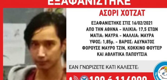 Ο έφηβος βρέθηκε και είναι καλά στην υγεία του Αίσιο τέλος στην υπόθεση της εξαφάνισης του 17χρονου Hojat Ashori, από την Αθήνα. Σύμφωνα με ανακοίνωση που εξέδωσε το Χαμόγελο του Παιδιού, ο έφηβος βρέθηκε και είναι καλά…