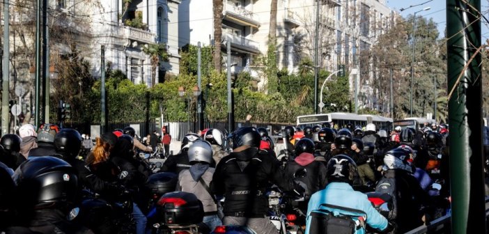 Οδηγοί ντελίβερι ξεκίνησαν από την Πλατεία Κλαυθμώνος κατευθυνόμενοι στη Βουλή, με αίτημά τους να αποδοθεί δικαιοσύνη για το τροχαίο δυστύχημα που έγινε στην είσοδο της Βουλής Μοτοπορεία στο κέντρο της Αθήνας πραγματοποιούν διανομείς το απόγευμα…