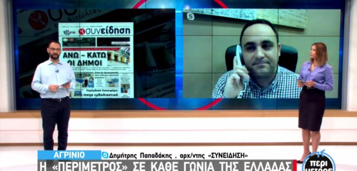 Η ενημερωτική εκπομπή “Περίμετρος” της ΕΡΤ3 φιλοξενεί καθημερινά το πρωτοσέλιδο της Εφημερίδας «Συνείδηση». Σήμερα, η Κατερίνα Ρενιέρη και ο Δημητρης Κουγιουμτζόπουλος παρουσίασαν τα βασικότερα θέματα στο πρωτοσέλιδο της εφημερίδας, ενώ συνομιλώντας με τον αρχισυντάκτη της…