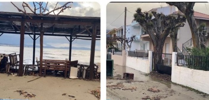 Δύσκολη ήταν η αποψινή νύχτα στο Αντίρριο με τους δυνατούς ανέμους και τα τεράστια κύματα να γεμίζουν με θαλασσινό νερό τους δρόμους και τα φερτά υλικά να φτάνουν στα σπίτια….