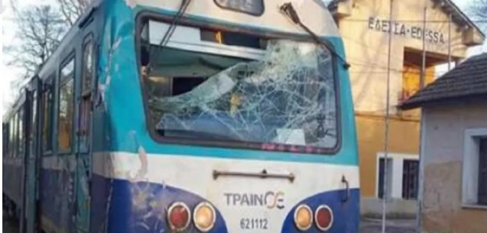 Tραίνο συγκρούστηκε με… δέντρο στην Έδεσσα, το πρωτοφανές ατύχημα συνέβη την στιγμή που η αμαξοστοιχία κινείτο έχοντας αναπτύξει μεγάλη ταχύτητα στο ύψος του σταθμού Βεγορίτη…