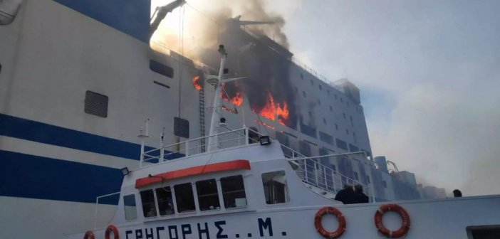 Εφιαλτικές στιγμές για οδηγό φορτηγού από το Μεσολόγγι στο φλεγόμενο πλοίο στην Κέρκυρα…