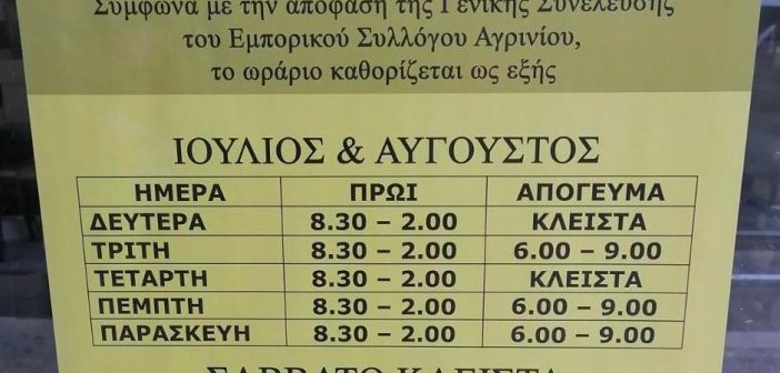 Από κυκλοφορεί στο Αγρίνιο η αφίσα/ντιρεκτίβα για την απόφαση της Γενικής Συνέλευσης του Εμπορικού Συλλόγου, για τα 9 (!) “κλειστά” Σάββατα….