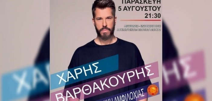 Ο Δήμος Αμφιλοχίας – ΚΕ.Κ.Α.Δ.Α. σας προσκαλεί σε συναυλία με ελεύθερη είσοδο με τον αγαπημένο ερμηνεύτρια Χάρη Βαρθακούρη, την Παρασκευή 5 Αυγούστου στις 21:30, στο Λιμάνι της Αμφιλοχίας, σε μια εκδήλωση που θα αποτελέσει το μουσικό γεγονός του φετινού καλοκαιριού για την περιοχή μας….