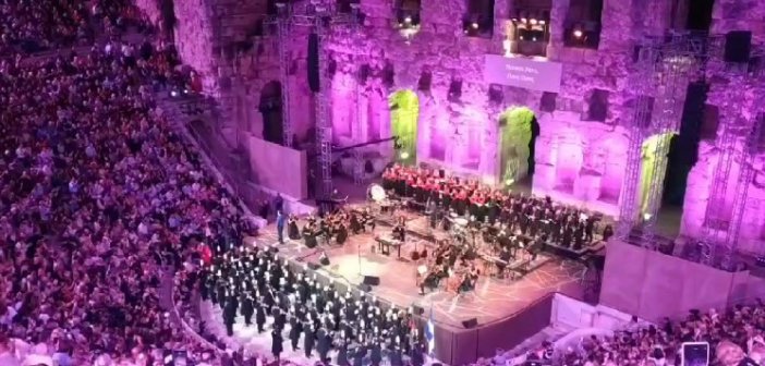 Κάτω απ’ τον μοναδικό έναστρο αττικό ουρανό, στον καταπληκτικό χώρο του Ωδείου Ηρώδου του Αττικού η αγαπημένη Μπάντα της Ιερής πόλης «Διονύσιος Σολωμός» παιάνισε μαζί με την ορχήστρα και χορωδία του Σταμάτη Σπανουδάκη…