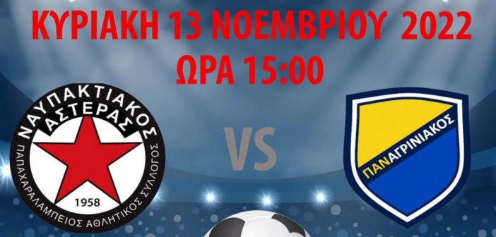 Την Κυριακή στο Παπαχαραλάμπειο το Ναυπακτιακός – Παναγρινιακός Την Κυριακή στις 15.00 στο Παπαχαραλάμπειο Στάδιο Ναυπάκτου είναι προγραμματισμένος ο αγώνας μεταξύ του Ναυπακτιακού Αστέρα και του Παναγρινιακού. Δείτε την αφίσα του αγώνα…