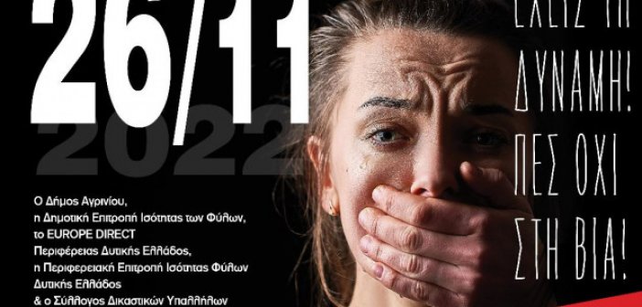 Ημερίδα – εκδήλωση με αναφορά στη Διεθνή Ημέρα Εξάλειψης της Βίας κατά των Γυναικών και των Παιδιών, το Σάββατο 26 Νοεμβρίου 2022 στο Αγρίνιο….