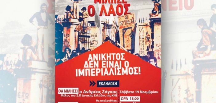 Ομιλία του Ανδρέα Ζάγκα και δρώμενο βασισμένο σε αληθινές μαρτυρίες περιλαμβάνει η εκδήλωση της ΚΝΕ και του ΚΚΕ που θα πραγματοποιηθεί το Σάββατο….