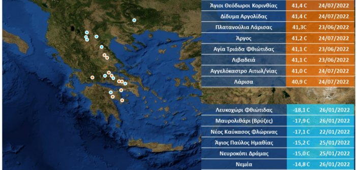 Όπως κάθε χρόνο, έτσι και φέτος, συγκέντρωσαν και παρουσιάζουν τα ρεκόρ βροχόπτωσης και θερμοκρασιών για το 2022 σύμφωνα με τις καταγραφές του δικτύου αυτόματων μετεωρολογικών σταθμών του Εθνικού Αστεροσκοπείου Αθηνών / meteo.gr Στο πλαίσιο αυτό στις περιοχές με τις 10 υψηλότερες θερμοκρασίες του 2022 είναι και το Αγγελόκαστρο, ενώ η έρευνα αυτή παρουσιάζει και άλλα αξιοσημείωτα μετεωρολογικά στοιχεία του έτους…