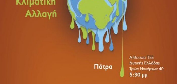 Το σχέδιο της «Οικολογικής Δυτικής Ελλάδας» για την προσαρμογή στην κλιματική αλλαγή της Αιτωλοακαρνανίας, της Αχαΐας και της Ηλείας Εκδήλωση για την Κλιματική Αλλαγή στην Πάτρα: Το υπάρχον Σχέδιο για την Προσαρμογή στην Κλιματική Αλλαγή της Περιφέρεια Δυτικής Ελλάδας (Αιτωλοακαρνανία, Αχαΐα, Ηλεία)…
