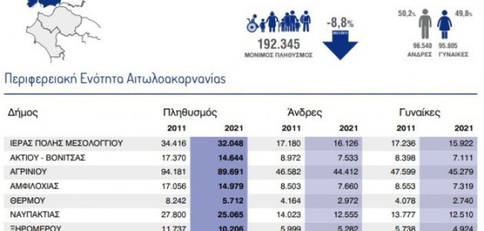Συνεχίστε την ανάγνωση του άρθρου: Τα επίσημα στοιχεία της ΕΛΣΤΑΤ για τον πληθυσμό της Αιτωλοακαρνανίας