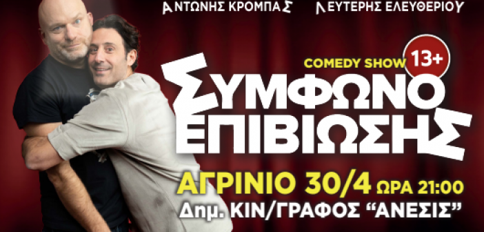 Στο Αγρίνιο θα βρεθούν ο Αντώνης Κρόμπας και ο Λευτέρης Ελευθερίου με ένα καταπληκτικό stand up comedy show….