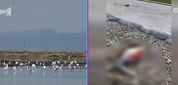 Τραγικές εικόνες καταγράφηκαν στο Μεσολόγγι, με φλαμίνγκο να κείτονται νεκρά το απόγευμα της Δευτέρας, στον δρόμο της Τουρλίδας….