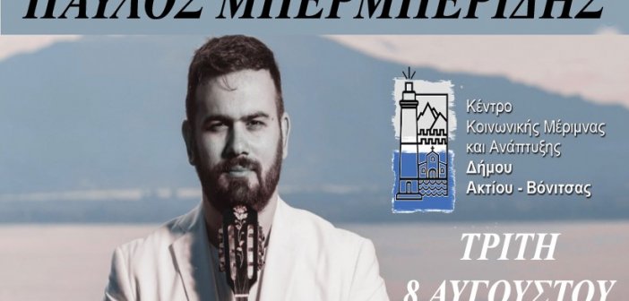 Την Τρίτη 8 Αυγούστου στην Πλατεία Κατούνας ο τραγουδοποιός Παύλος Μπερμπερίδης σε μια ξεχωριστή μουσική βραδιά στις 10 το βράδυ – Είσοδος ελεύθερη !!…