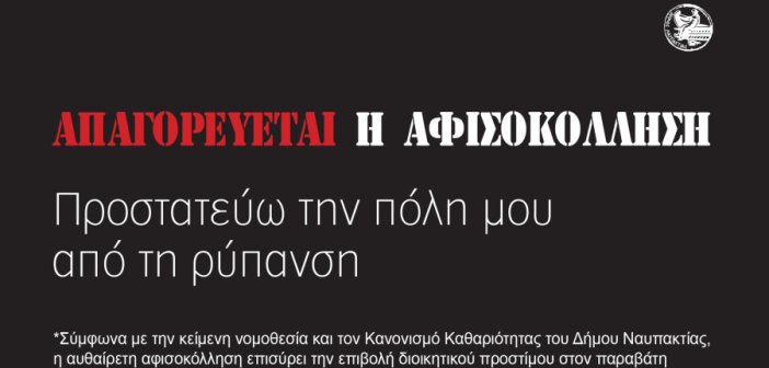 Συνεχίστε την ανάγνωση του άρθρου: Δήμος Ναυπακτίας: Προειδοποίηση για την παράνομη αφισοκόλληση