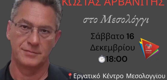 Ο ΣΥΡΙΖΑ ΠΣ Μεσολογγίου καλεί τα μέλη και τους φίλους του, στην εκδήλωση που διοργανώνει με ομιλητή τον ευρωβουλευτή Κώστα Αρβανίτη…