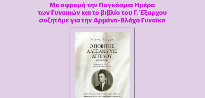 Η Συντροφιά Βλάχων Αθήνας τιμά την Παγκόσμια Ημέρα των Γυναικών με μια ξεχωριστή εκδήλωση. Όπως αναφέρει σε ανακοίνωσή της: «Σε συνεργασία με το Ινστιτούτο για την Έρευνα και την Κοινωνική Αλλαγή Eteron διοργανώνει εσπερίδα αφιερωμένη στο βιβλίο…