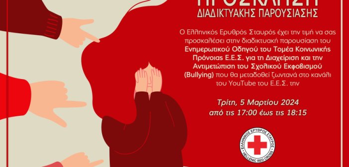 Συνεχίστε την ανάγνωση του άρθρου: Ερυθρός Σταυρός: Δράσεις ενημέρωσης για το σχολικό εκφοβισμό – Διαδικτυακή εκδήλωση στις 17:00 σήμερα