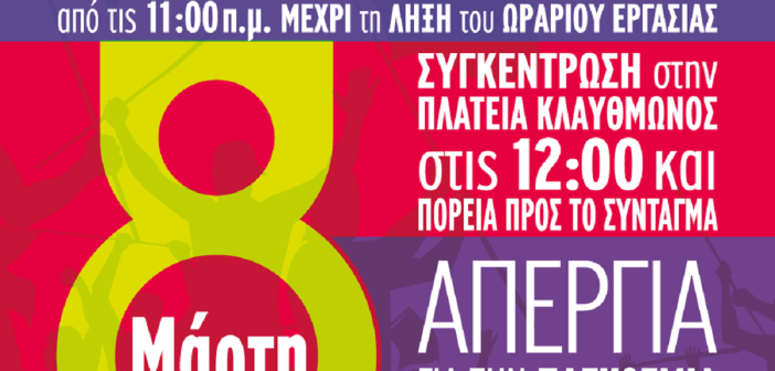 Συνεχίστε την ανάγνωση του άρθρου: ΑΔΕΔΥ: Στάση εργασίας αύριο 8 Μαρτίου και συγκέντρωση στην πλατεία Κλαυθμώνος