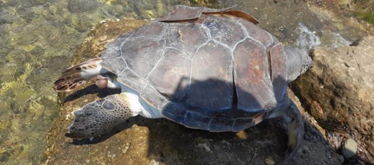 Αιτωλοακαρνανία 2024-07-15 Μεσολόγγι: Νεκρή πράσινη χελώνα στον Δίαυλο της Τουρλίδας Δυτικά FM Λουόμενος βρήκε την χελώνα στην περιοχή Μαρόκια