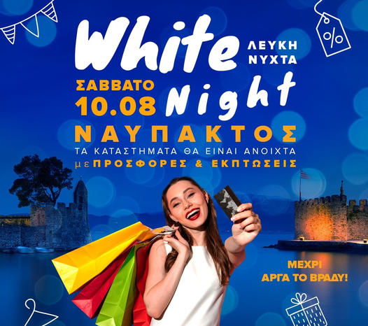 Αιτωλοακαρνανία 2024-08-06 Ναύπακτος: Ανοιχτά μέχρι αργά τα εμπορικά το Σάββατο (10/8) – «Λευκή νύχτα» οργάνωσε ο Εμπορικός Δυτικά FM Δέλεαρ οι εκπτώσεις και οι προσφορές!