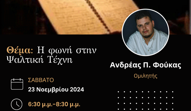 Πολιτιστικά 2024-11-20 Αγρίνιο: Ο Ανδρέας Φούκας στο πρώτο φροντιστήριο ψαλτικής του Συλλόγου Ιεροψαλτών «Άνθιμος ο Αρχιδιάκονος» Δυτικά FM Ο Ανδρέας Φούκας θα πραγματοποιήσει το πρώτο για φέτος φροντιστήριο ψαλτικής στο Αγρίνιο, στον Ιερό Ναό Αγίας Τριάδας
