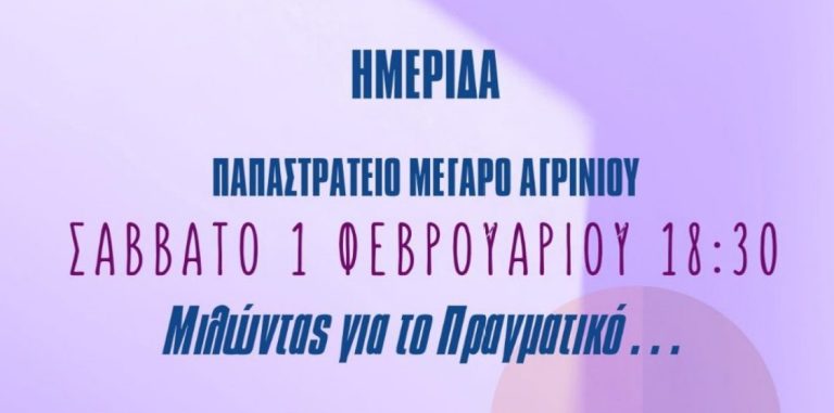 Αιτωλοακαρνανία 2025-01-27 Αγρίνιο: Ημερίδα με θέμα «Μιλώντας για το Πραγματικό…» από το «ΟΔΥΣΣΕΑΣ» – ΟΚΑΝΑ Δυτικά FM Ημερίδα με θέμα «Μίλώντας για το Πραγματικό…», διοργανώνει το ΚΠ «ΟΔΥΣΣΕΑΣ» – ΟΚΑΝΑ ΠΕ Αιτωλ/νίας, το Σάββατο 1/2, στο Παπαστράτειο Μέγαρο Αγρινίου