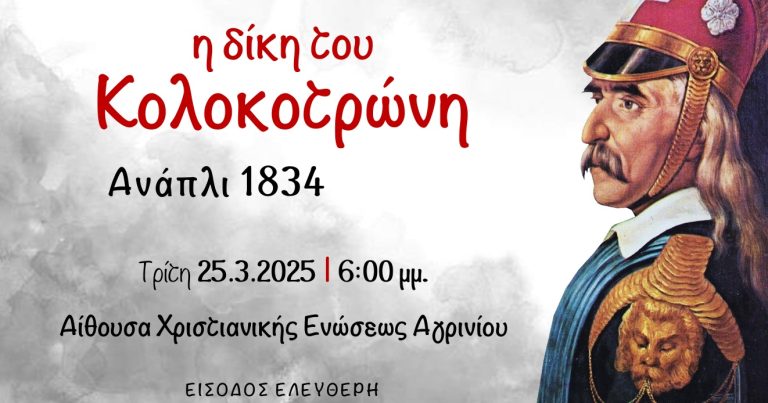 Αγρίνιο: Εθνική γιορτή στη Χριστιανική Ένωση – Παρουσιάζει το έργο “Η δίκη του Κολοκοτρώνη”