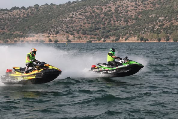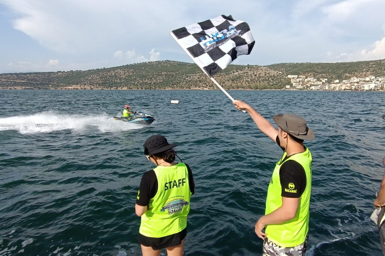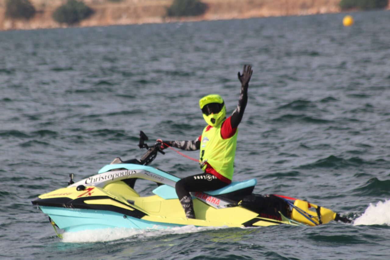 Η στιγμή του τερματισμού στους διεθνείς αγώνες τζετ σκι στην Αμφιλοχία
