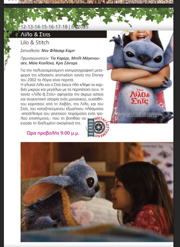 Πηγή: «Λίλο και Στιτς μέχρι τις 18 Ιουνίου στον «Ελληνίς» του Αγρινίου