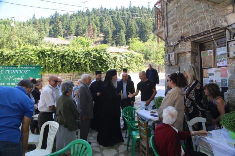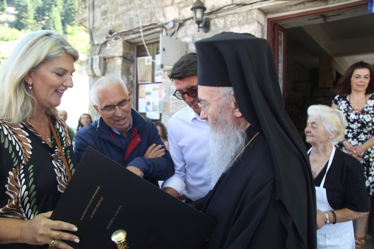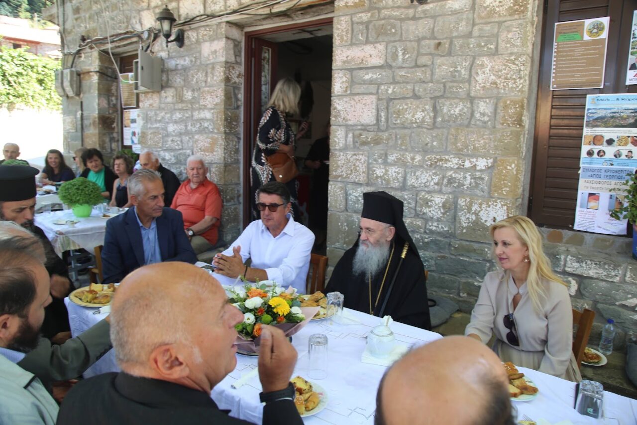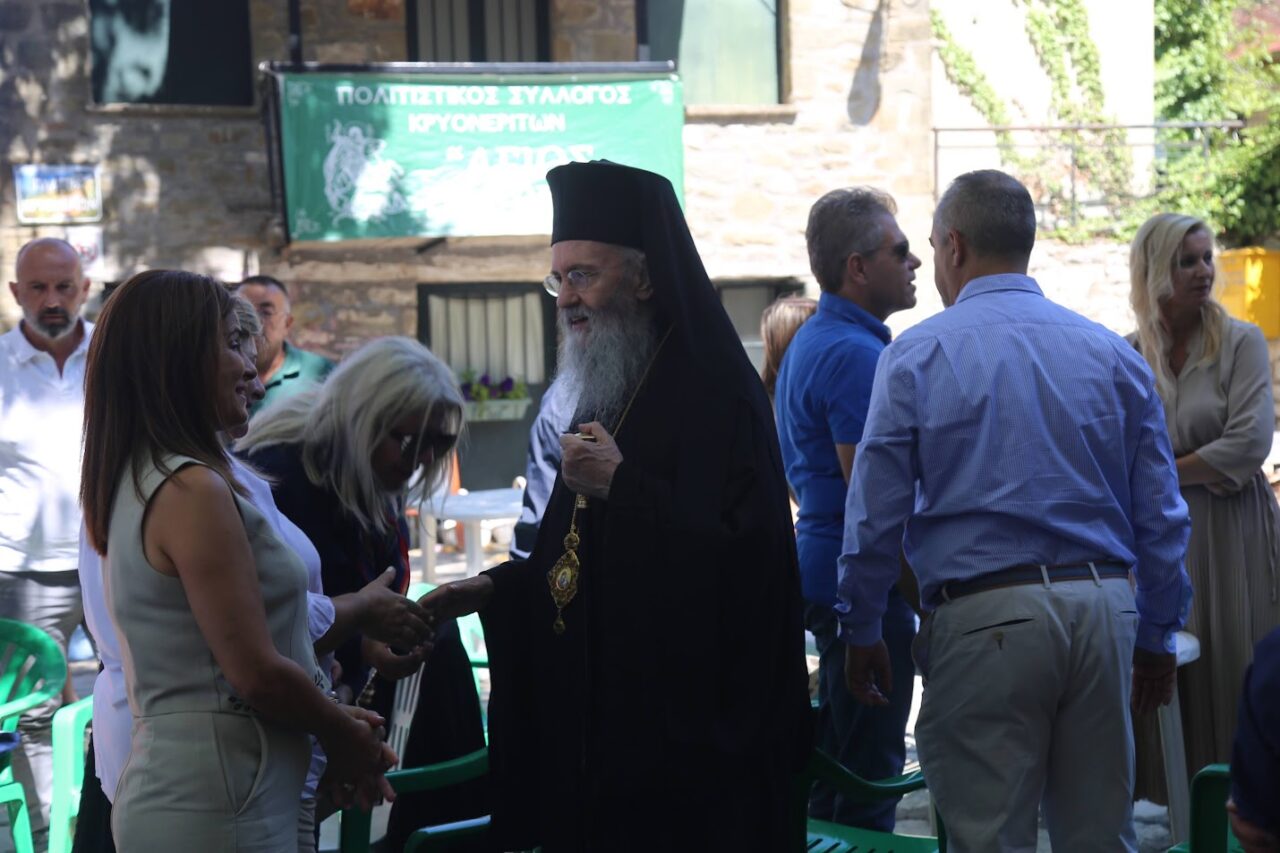 Ὁ Σύλλογος τῶν Ἁπανταχοῦ Κρυονεριτῶν «Ἅγιος Γεώργιος» προσέφερε στόν Σεβασμιώτατο δεμένα ὅλα τά φύλλα τοῦ τοπικοῦ περιοδικοῦ «Ὁ Δαμιανός», πού καταγράφει τήν παλαιά, ἀλλά καί τήν σύγχρονη ἱστορία τοῦ τόπου. Ἀκολούθως ἐπισκέφθηκε τό Λαογραφικό Μουσεῖο τοῦ χωριοῦ καί τήν σύγχρονη Ξενοδοχειακή μονάδα Omalia Village, ὅπου παρατέθηκε γεῦμα.