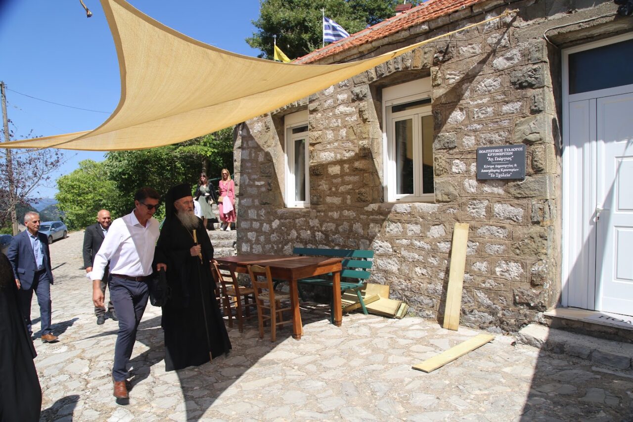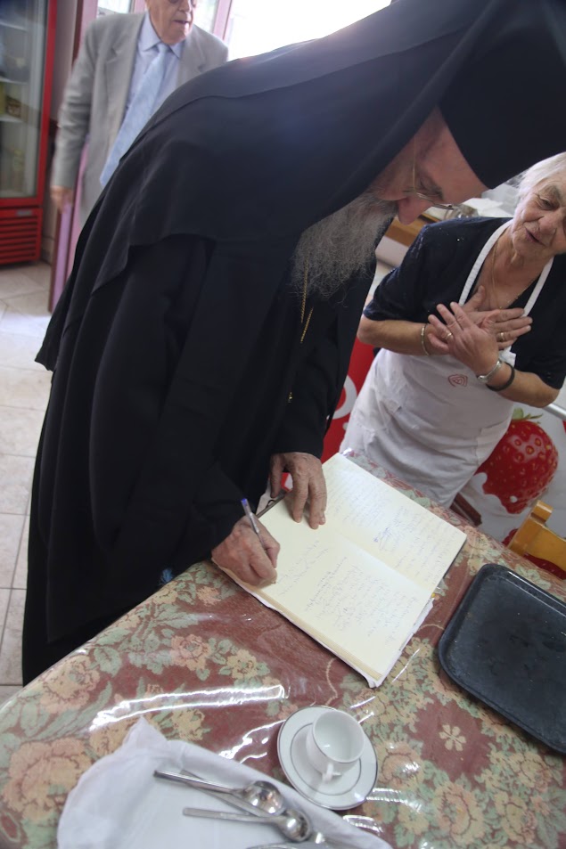 Μετά τήν θεία Λειτουργία ἐπισκέφθηκε τό σχολικό κτήριο πού ἔχει μετατραπῆ σέ «Κέντρο Δημιουργίας καί Ἀπασχόλησης» τῶν παιδιῶν πού παραθερίζουν στό χωριό. Ἀπό ἐκεῖ κατευθύνθηκε στήν κεντρική πλατεία, ὅπου εἶχε τήν εὐκαιρία νά συνομιλήση μέ τούς θερινούς κατοίκους τῶν Κρυονερίων.