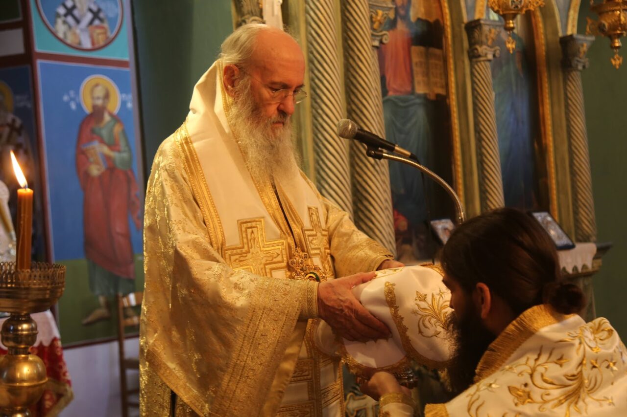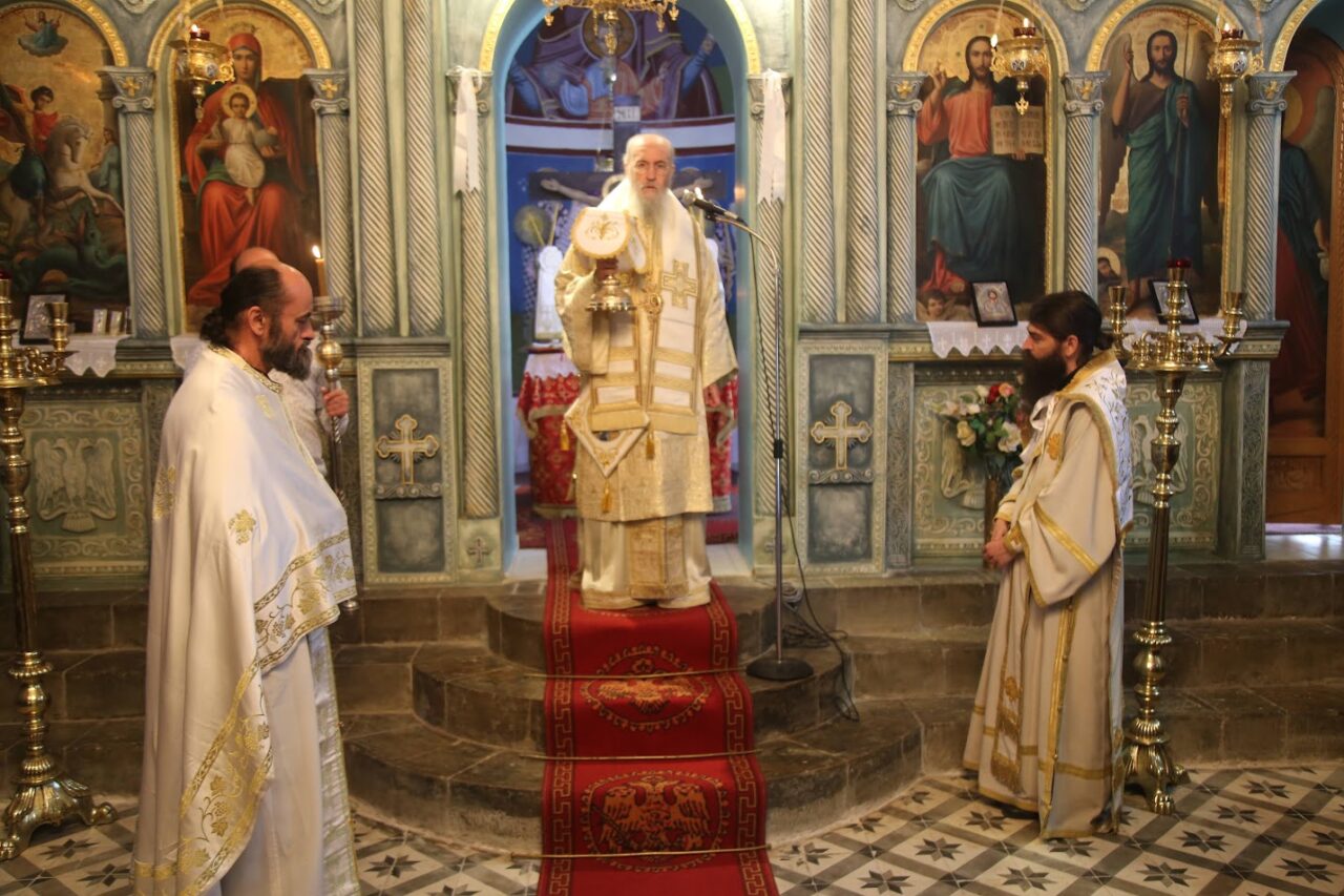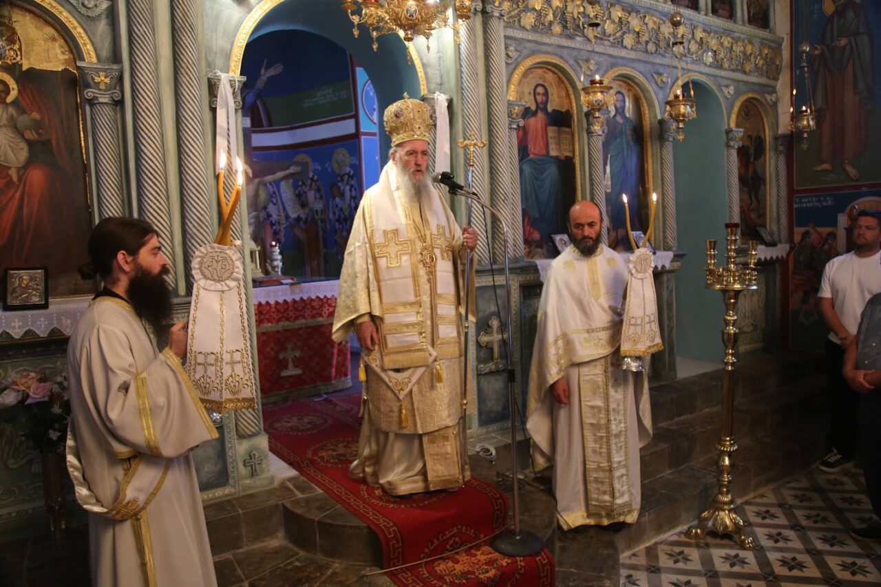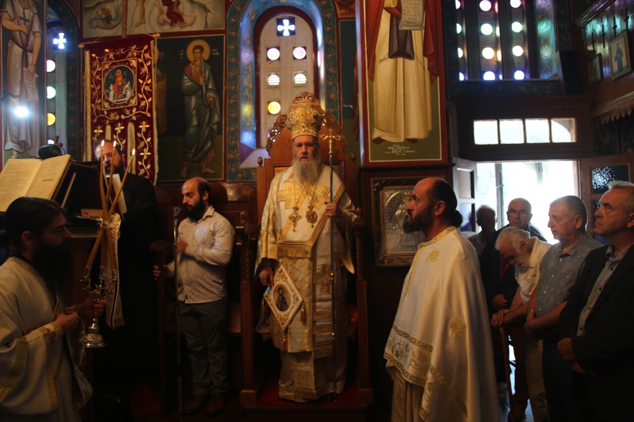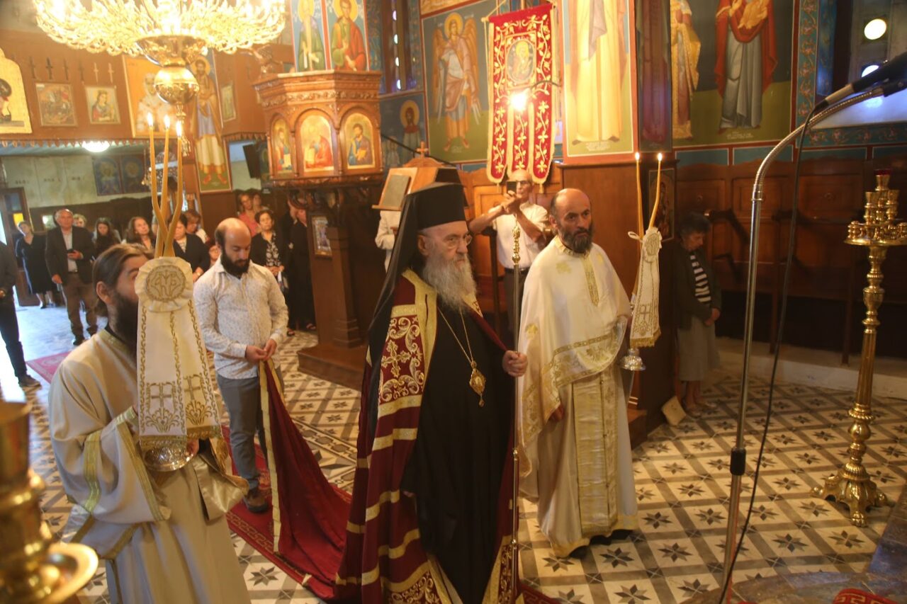 Ὁ Σεβασμιώτατος χοροστάτησε στόν ἀναστάσιμο Ὄρθρο καί τέλεσε τήν θεία Λειτουργία στόν Ἱερό Ναό Ἁγίου Γεωργίου Κρυονερίων, πλαισιούμενος ἀπό τόν Ἱερέα π. Ἰωάννη Ντζουμάνη καί τόν Διάκονο π. Παΐσιο Παρασκευᾶ.