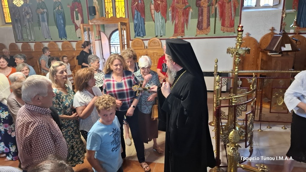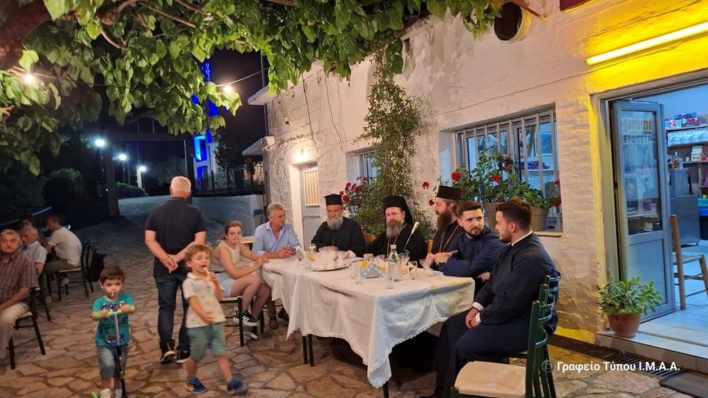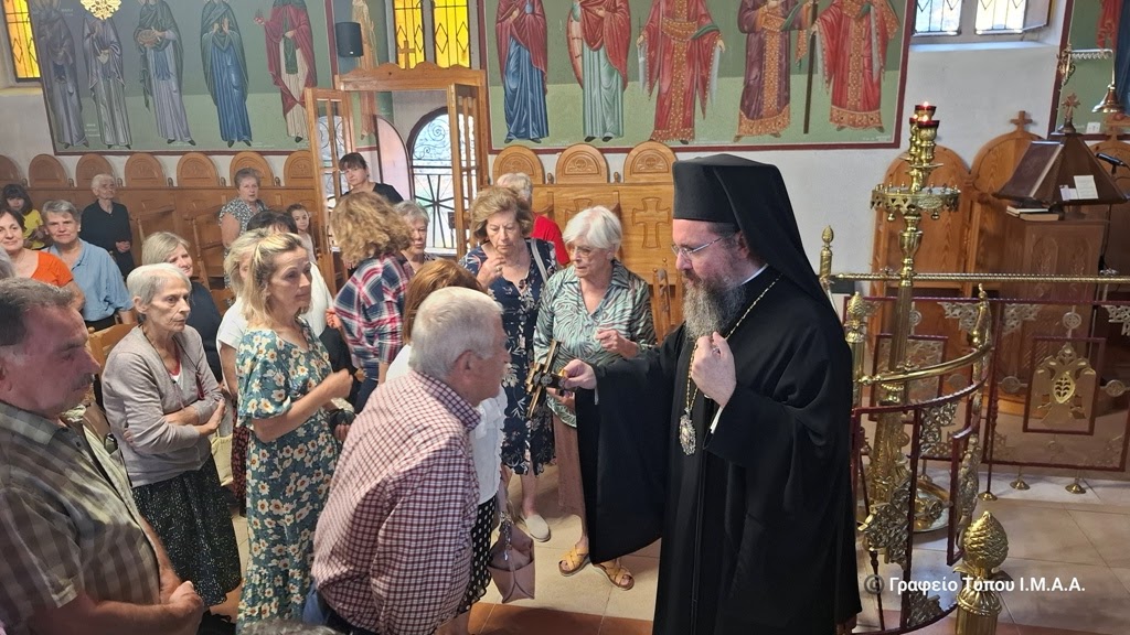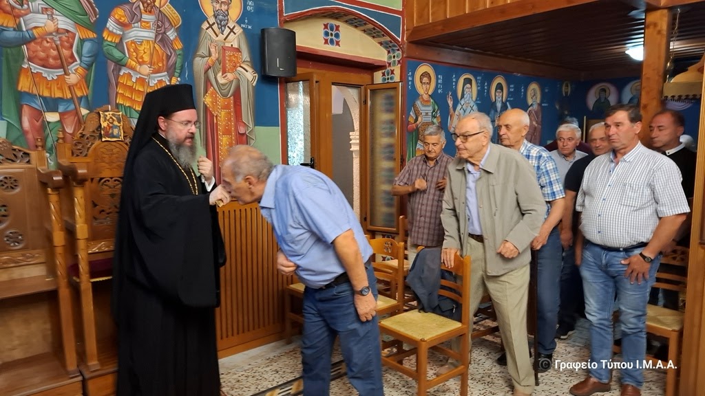Μετά τις Ακολουθίες ο Σεβασμιώτατος είχε την ευκαιρία να επικοινωνήσει με τους πιστούς, τους εκπροσώπους των τοπικών αρχών και τους ιερείς, να ακούσει τα προβλήματά τους και να δεχθεί την φιλοξενία τους.